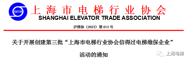 关于开展创建第三批“上海市电梯行业协会信得过电梯维保企业”活动的通知